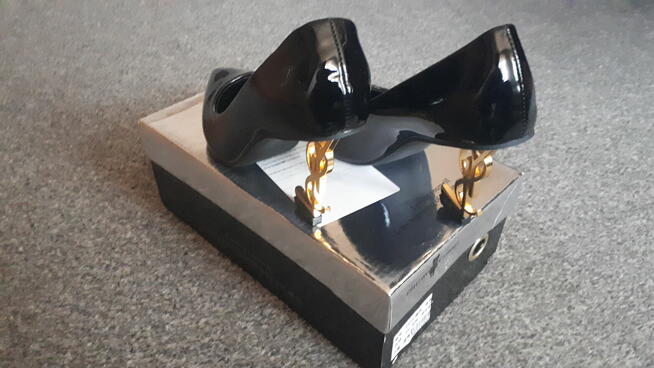Nowe czarne lakierowane szpilki YSL w kolorze czarnym wkładka 24cm